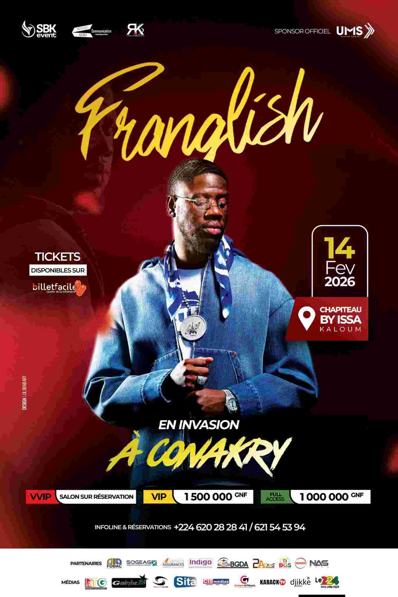 Gédéon Ngolo, alias Franglish, est attendu à Conakry pour un concert exceptionnel le 14 février prochain. En prélude à cet événement placé sous le signe de l’amour, notre rédaction s’est entretenue avec Al Souaré de Nord-Sud Communication afin de faire le point sur les préparatifs.