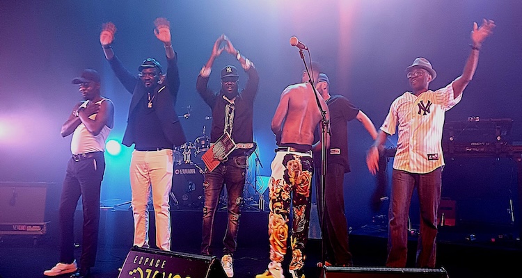 Konono N°1, le mythique collectif de Kinshasa est de retour. Ce soir, il est représenté par trois joueurs de likembé dont un soliste chanteur au centre de la scène. Ils sont accompagnés d’un percussionniste aux congas, avec un sifflet. Derrière eux, un batteur-chanteur qui chauffe la salle et le créateur de sons électros de Montparnasse Musique en fusion avec les autres musiciens. Pas de présentation des titres des morceaux, d’emblée on est pris par des sons répétitifs, amplifiés, électrifiés. Le public se presse devant la scène pour mieux capter cette rencontre sonore inédite. La salle de l’Espace Django devient rapidement un dancefloor où tout le monde bouge !