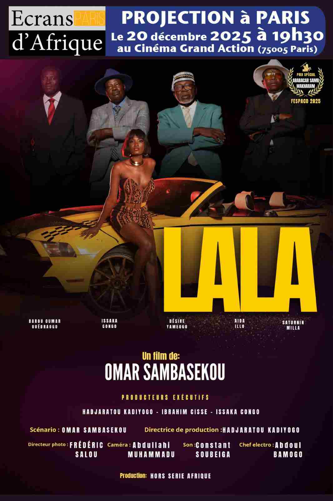 Le cinéma burkinabè sur le grand écran à Paris le samedi 20 décembre 2025. Une avant-première du long métrage « LALA » est organisée au cinéma Le Grand Action à 19h30, au 5, rue des Écoles, dans le 5ᵉ arrondissement de Paris.