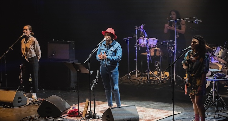 Ce soir, Christine Salem dialoguait avec son public, l’impliquant en responsorial, dans un échange spontané. Les musiciennes ajoutaient l’harmonie vocale, créant une ambiance joyeuse. Les morceaux s’enchaînent sans temps mort, accompagnés du kayamb. La voix, souvent a capella au début, nous fait pénétrer un rituel de blues avec paroles répétées, tonalité grave et rythme ternaire. « Elle a su provoquer un moment d’immersion dans la musique de son île », commente MariJane, connaisseuse de la Réunion et spectatrice.