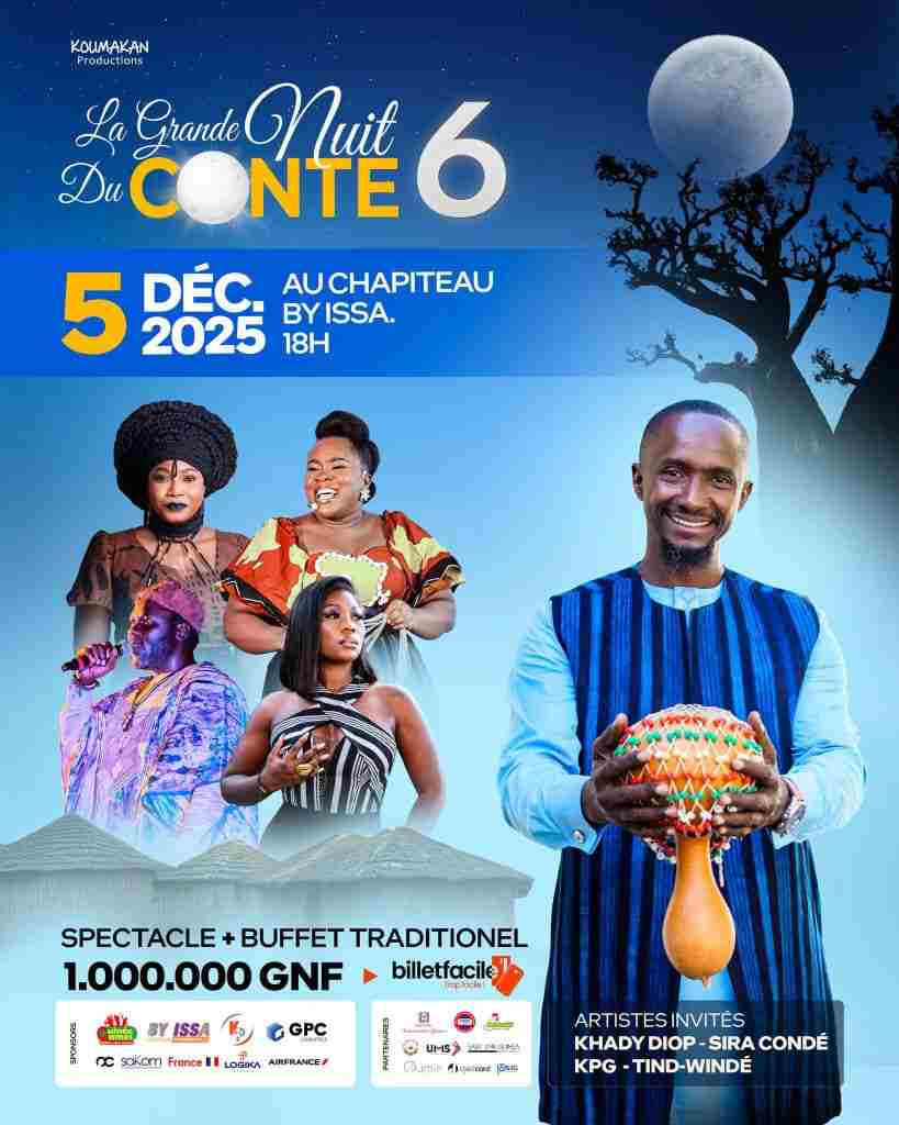 PT : « Cette année, la Grande Nuit du Conte présentera un spectacle de conte inédit, porté par moi‑même et par deux grandes voix de la musique guinéenne, Sira Condé et Kady Diop. Le tout sera soutenu par de grands musiciens et une mise en scène animée par des danseurs, pour offrir une expérience artistique complète. Comme le veut la tradition, nous accueillerons également des conteurs invités, car la parole est plus belle lorsqu’elle est partagée.